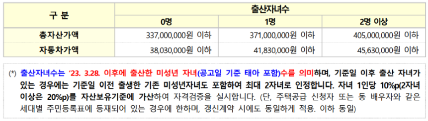 자녀는 주택공급에 관한 규칙2조제23호에 따른 신청자의 세대구성원인 자녀태아를 의미하므로 신청 시 유의하시기 바랍니다.(이하 이 공고문에서 같음)