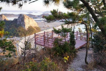 - 망주봉 (入山 통제 주의): 진안 마이산처럼 보이는 두 개의 바위 봉우리. 과거에는 등반이 가능했으나 현재는 사고 위험으로 입산이 통제되는 경우가 많으니, 해변에서 바라보는 비경을 즐겨주세요.