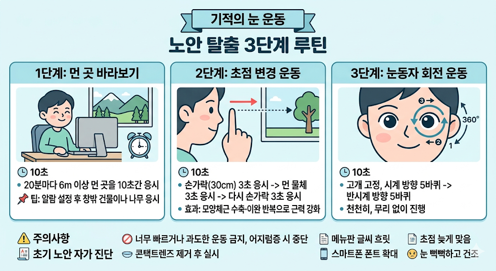 - 2단계: 초점 변경 운동 (10초)
