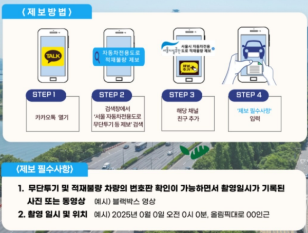 • 카카오톡에서 '서울 자동차전용도로 무단투기 등 제보' 채널 추가