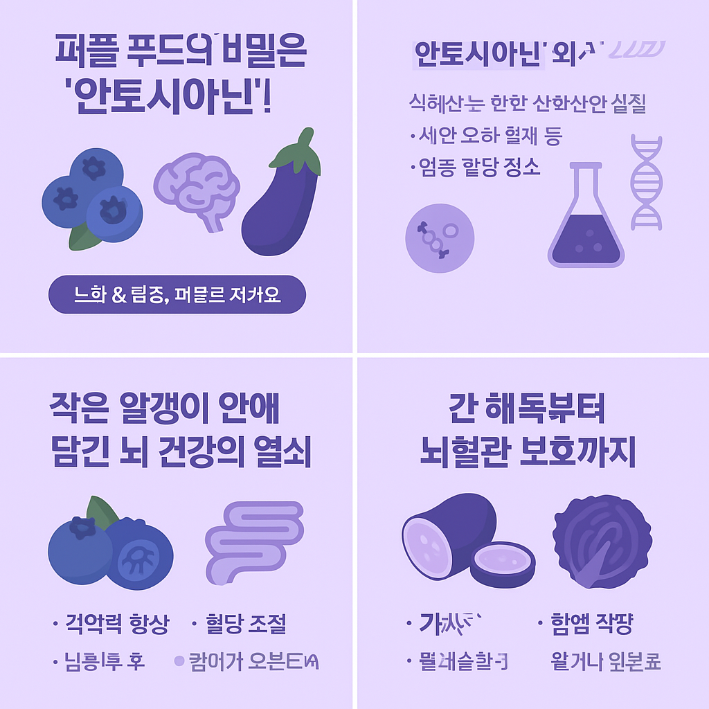이 보라색 식품들은 노화 방지와 염증 억제에 탁월한 효과가 있다고 알려져 있죠.