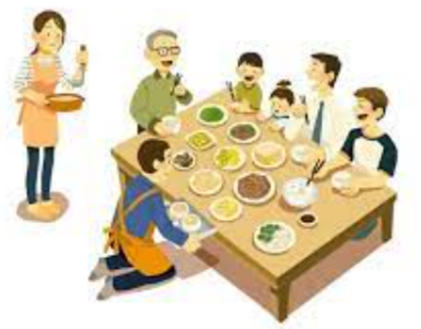 (1) 전통: 어른이 먼저 식사를 시작하고 수저를 놓아야 다른 사람들이 따라 하는 등 밥상 머리 교육을 통해 위계질서 와 공경의 자세를 배웠습니다.