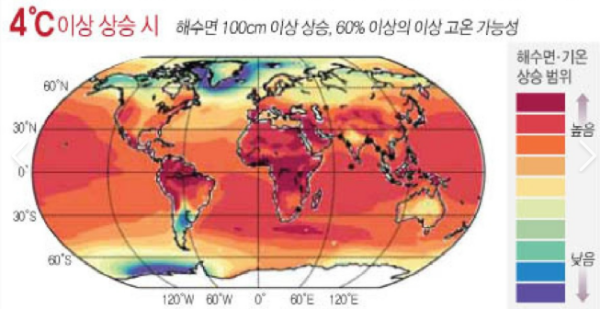 - 과거와 현재의 비교: 과거 빙하기가 끝나고 농업이 시작될 무렵, 약 1만 년에 걸쳐 지구 평균 기온이 4℃ 상승하였다.