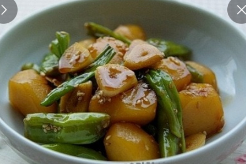 o 껍질째 감자와 꽈리고추를 간장, 마늘, 고추, 생강 등으로 졸여내는 반찬이에요.