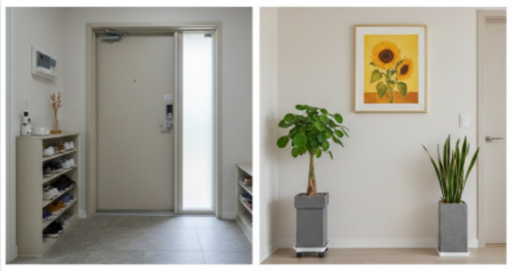 ✅ 핵심 요약 강조: 현관은 무조건 밝아야 합니다. 어두운 현관은 정체된 기운을 만들며, 지저분한 신발장은 들어오던 복도 내쫓는 격입니다.