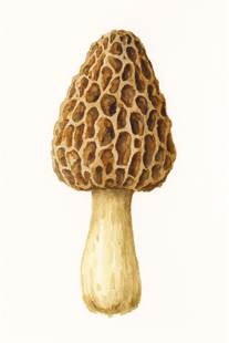 - 왼쪽: 곰보버섯(Morchella esculenta) — 벌집처럼 규칙적인 홈이 있는 갓, 길고 속이 빈 자루.