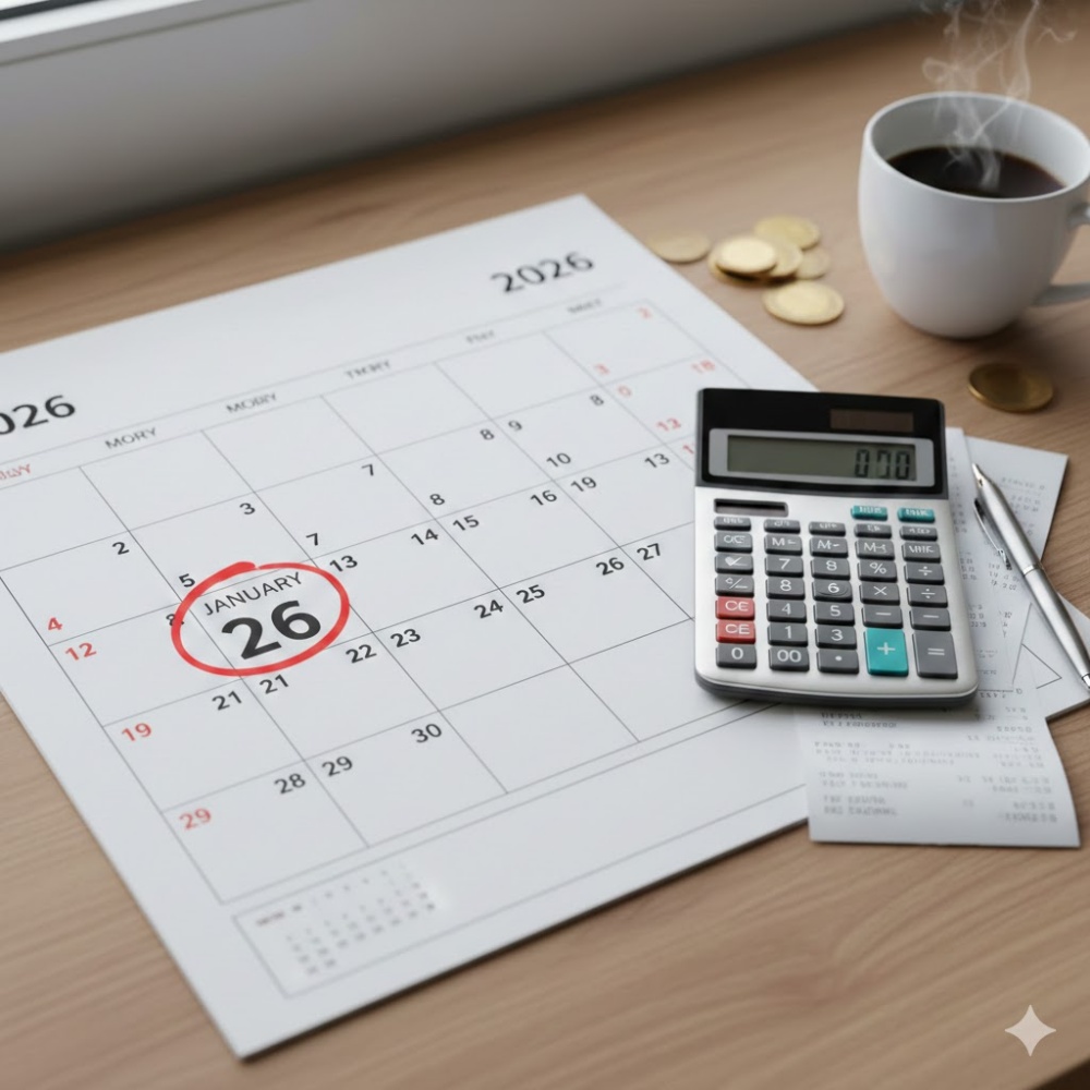 올해 신고 대상 기간은 2025년 1월 1일부터 12월 31일까지의 1년 치 실적입니다. 원래 마감일은 1월 25일이지만, 해당일이 일요일인 관계로 익일인 **26일(월)**까지로 하루 자동 연장되었습니다. 하지만 과거 코로나19 등으로 시행되었던 '2개월 납부 유예'는 종료되었으므로, 반드시 기한 내에 자금을 준비하셔야 합니다.
