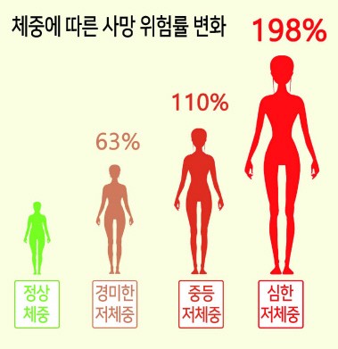 3. 골다공증 : 체중이 적으면 뼈의 밀도가 낮아져 골다공증의 위험이 증가합니다. 이는 골절로 이어질 수 있습니다.